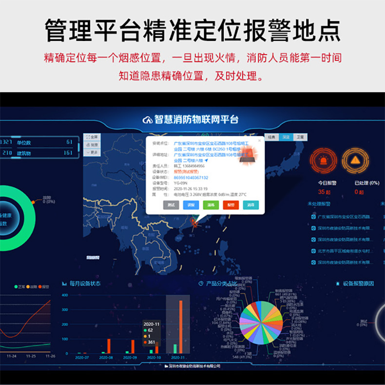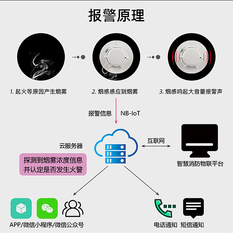 产品描述:NB-IoT智慧烟感的引入解决了传统烟感器布线难、电池使用周期短、维护成本高、无法与业主及消防机构交
